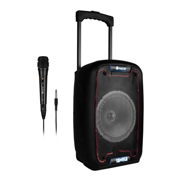 NGS Wild Samba un equipo musical portátil, compatible con tecnología Bluetooth y 30W de potencia de salida de pico (8″ x 1 woofer + 1″ x 1 tweeter) proporcionan una excelente calidad de sonido.