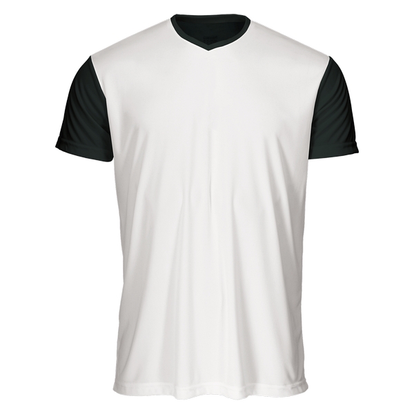 Camiseta manga corta de cuello redondo realizada en interlock con color predefinida y parte delantera en blanco para que se pueda personalizar vía sublimación este delantero (tecnología de quick-transfer).